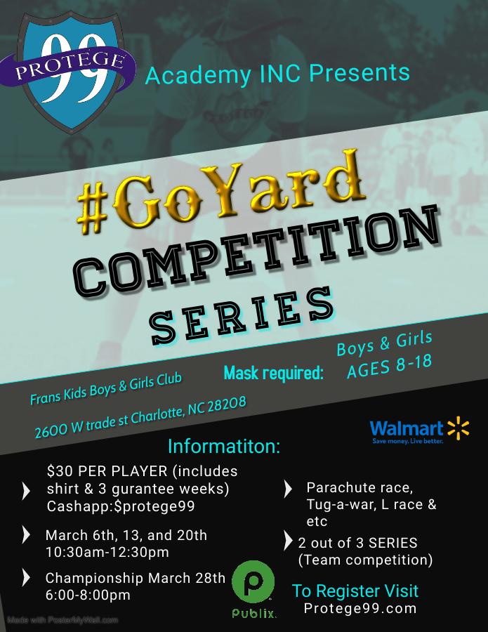 Join us for our annual Competition Series open to both co-ed middle and high school student athletes. Step up to the challenge and represent. This year we will be hosting this event at 3200 Shamrock Dr, Charlotte, NC 28205 from 11:00 am - 1:00 pm.